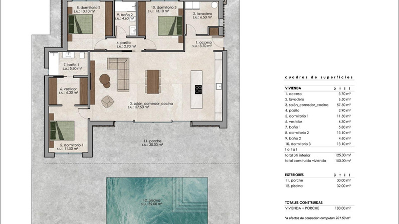Custom Built New Villas in Pinoso (Alicante): Spacious Homes in Natural SurroundingsNew Build Villas Tailored to Your Lifestyle in PinosoDiscover a unique opportunity to build your dream home in the peaceful surroundings of Pinoso, located in the inland area of Alicante on the Costa Blanca. These modern independent villas are designed under a self build concept, allowing buyers to choose from different models, layouts and plots to create a fully personalized home.Pinoso is a charming Spanish town known for its vineyards, traditional culture and relaxed lifestyle. The area offers a perfect balance between nature and everyday convenience, with local shops, restaurants and services available nearby. It is an ideal destination for those seeking tranquility while remaining connected to larger towns and the coast.Flexible Villa Designs with Modern ArchitectureBuyers can choose between a variety of villa models offering 2 or 3 bedrooms and 2 or 3 bathrooms, with options for single or two storey layouts. Built areas range from approximately 100 m2 to 260 m2, adapting to different lifestyle needs.Each villa is set on spacious plots, particularly in rustic locations where plots start from 10.000 m2, providing privacy and open views of the surrounding countryside.High Quality Features and Energy Efficient LivingAll villas are built with high quality materials and include a private 8 by 4 meter swimming pool, fully equipped kitchen with appliances and complete air conditioning system with airzone technology.The homes also feature aerothermal systems for hot water, fully fitted bathrooms with mirrors and shower screens, and an A energy rating for maximum efficiency.For rustic plots, the properties include 24 photovoltaic solar panels, water purification systems where necessary and sustainable wastewater solutions. Urban plots benefit from connection to mains water and sewage systems.Outdoor areas are carefully finished with paved terraces, pool areas and a perimeter walkway, while plots include 3.000 m2 fencing, motorized vehicle access and landscaped surroundings.Custom Plot Selection and Self Build ProcessSeveral plots are available in different locations around Pinoso, each with its own price (for this advert, a plot with a cost of 55.000 eur has been considered, if chosen a different plot price, the final price will be recalculated accordingly). The construction is carried out under a self build system, where payments are made in stages as the project progresses.The estimated delivery time is approximately 10 months from the granting of the building license.Excellent Location with Good ConnectivityPinoso offers a strategic inland location with easy access to key destinations. Alicante Airport is approximately 60 km away, while the beaches of the Costa Blanca can be reached in around 65 km. Golf courses are located within a 40 to 50 km radius, and the cities of Elche and Alicante are both within comfortable driving distance.Ideal Investment or Permanent ResidenceThese custom built villas provide an excellent opportunity to create a bespoke home in a peaceful and natural environment, with modern comforts and strong investment potential.Contact us today for more information and start designing your new villa in Pinoso.